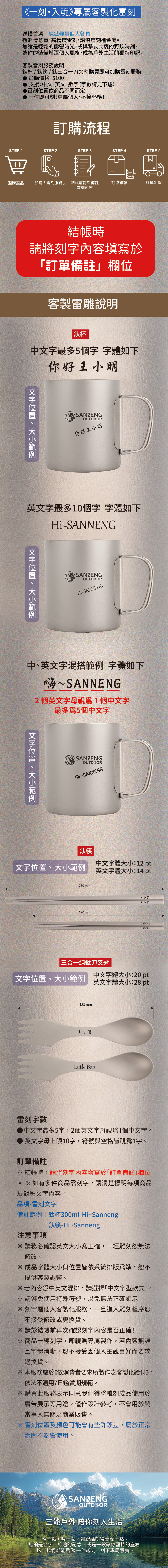 鈦杯 / 鈦筷 / 鈦三合一刀叉勺購買即可加購雷刻服務